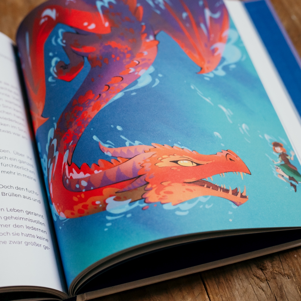 Bis Mitte des Jahres konnte man ein selbstgeschriebenes Märchen einreichen - die einzige Voraussetzung war, dass die Geschichte einen gewissen Bezug zu Chemnitz hatte. Die Einreichungen wurden dann anonymisiert und von einer bunt gemischten Jury hinsichtlich verschiedener Kriterien (von Originalität bishin zu zielgruppenkonformer Sprache) bewertet. Die Nachricht, dass es "meine" Jari unter die Gewinner:innen geschafft hat, erreichte mich an einem Mittwochvormittag im Sommer - verbunden mit der freundlichen Bitte, bis zur Veröffentlichung noch Stillschweigen zu bewahren. Drei Monate Klappehalten bei so einer Nachricht! Ich gab mein Bestes, aber oft genug kam es mir so vor, als wäre Jaris Kampf gegen den fuchsroten Drachen die geringere Herausforderung gewesen. 😄 Doch ich war und bin wahnsinnig glücklich und stolz auf diese Auszeichnung, und als ich das Buch zum ersten Mal samt Illustrationen sah, machte mein Herz wirklich ein paar Freudensprünge. Dass es "nur" der dritte Platz geworden ist, spielt dabei überhaupt keine Rolle - im Gegenteil. Ich oute mich gerne als riesiger Kuha-Fan (ich habe einige Male lachen müssen, als ich die Geschichte las) und freue mich, dass ich meinen Teil zu diesem Buch beitragen konnte. Denn das Ergebnis ist ein wunderbares Märchenbuch mit vier spannenden, spaßigen, herzerwärmenden Märchen von vier unterschiedlichen Autor:innen mit jeweils unterschiedlichen Schreib- und Erzählstilen. Zusammengehalten wird alles von den wundervollen Zeichnungen der Leipziger Illustratorin Clara Fischer.