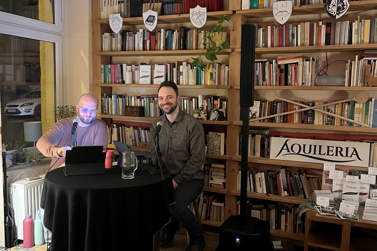 Gelesen wurde natürlich wieder im Duett mit Alexander Senf (den ihr aus den AQUILERIA Hörbüchern kennt), und natürlich lag auch das Lesungsabenteuerbeitragsformular aus. Die daraus entstehenden Kurzgeschichten findet ihr demnächst hier auf aquileria.de.